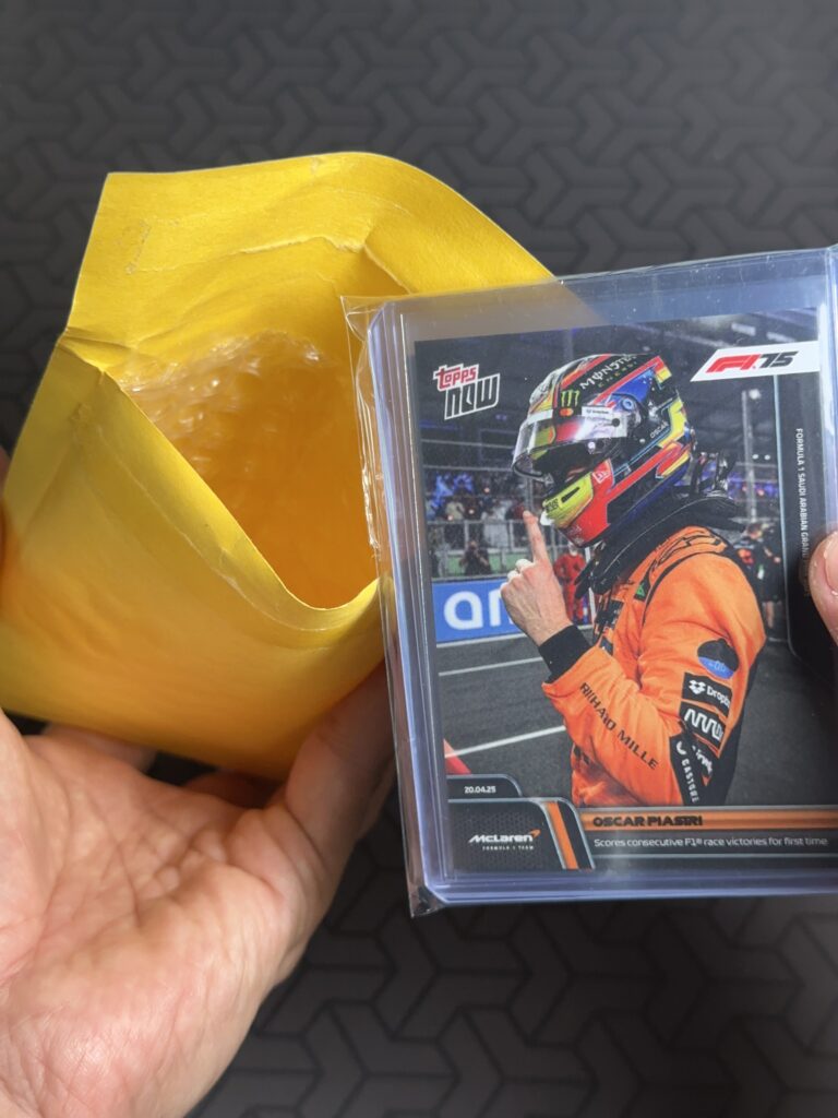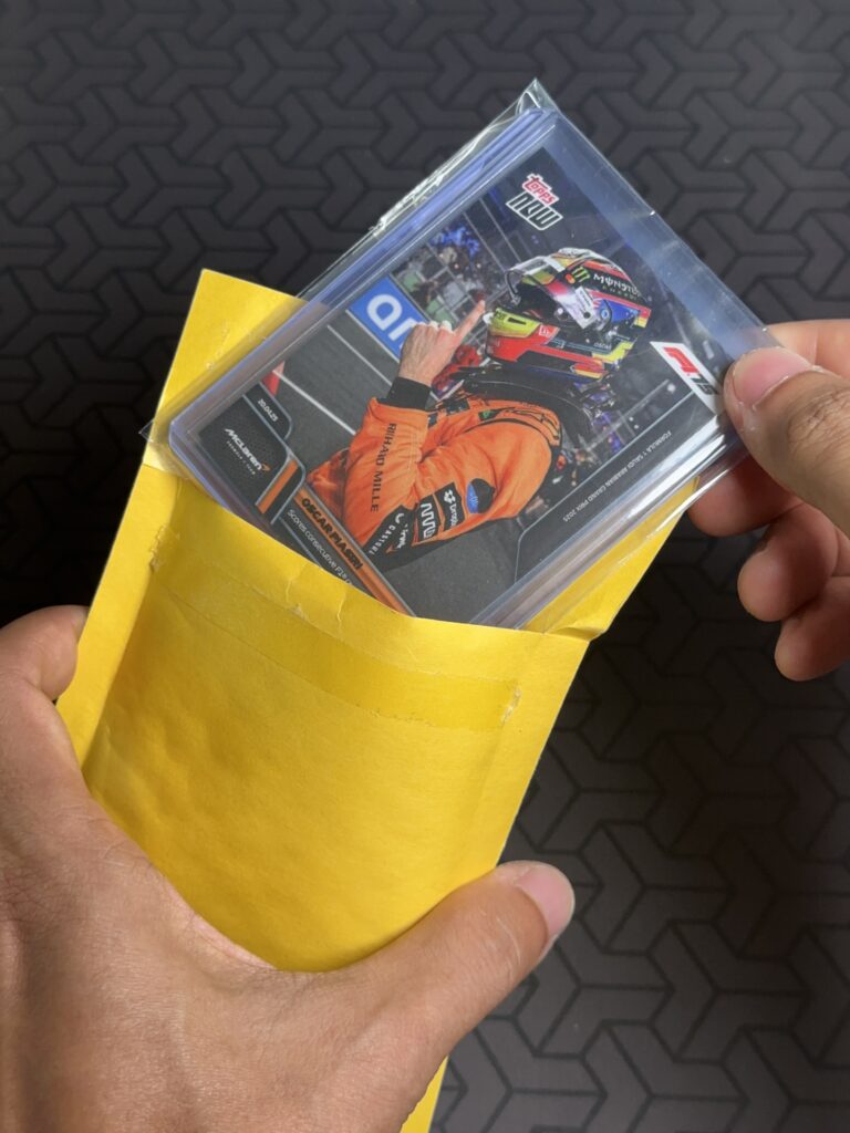 Then it is put into a top loader or card saver for rigidity.