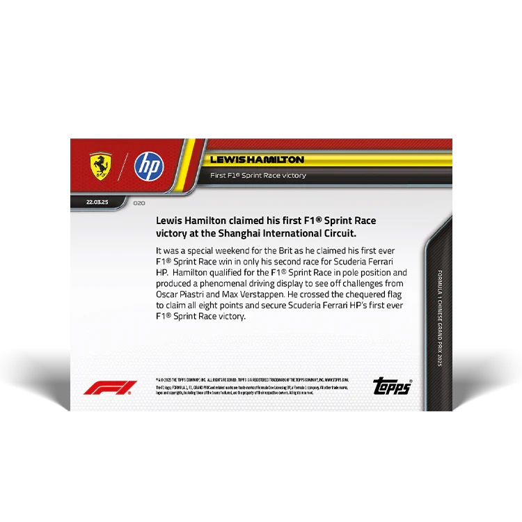 Lewis Hamilton – 2025 Formula 1® Topps NOW® Card 20 – PR: 2509